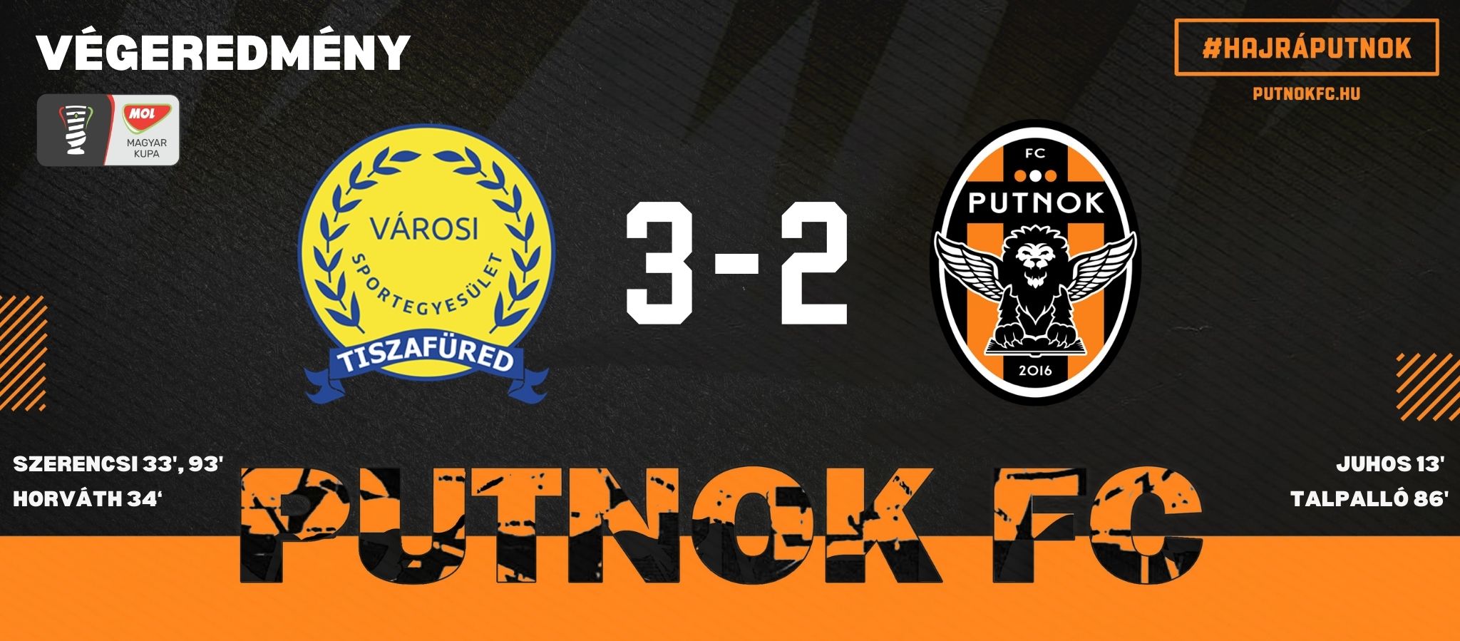 Szoros mérkőzésen, a hosszabbításban kapott góllal búcsúztunk a MOL Magyar kupából 2025 szept 13Farkas Attila Szeptember 13-án újra Tiszafüreden vizitált a Putnok FC. Szala Ákos legénysége egy héttel a bajnoki találkozó után ezúttal a MOL Magyar kupa... Read More0