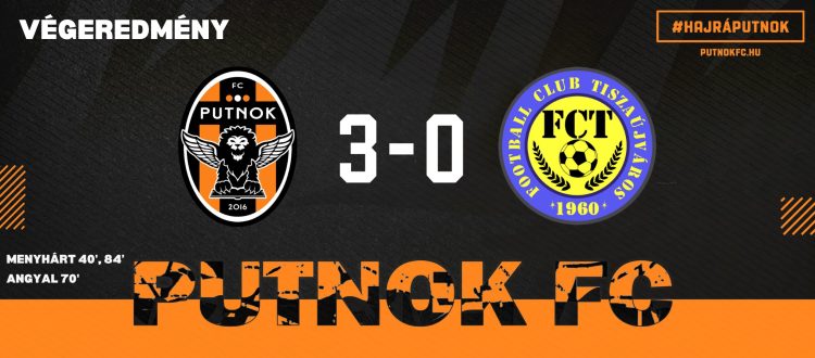 Putnok FC – Termálfürdő FC Tiszaújváros: 3 – 0 (1 – 0) (Menyhárt ( 2 ), Angyal)