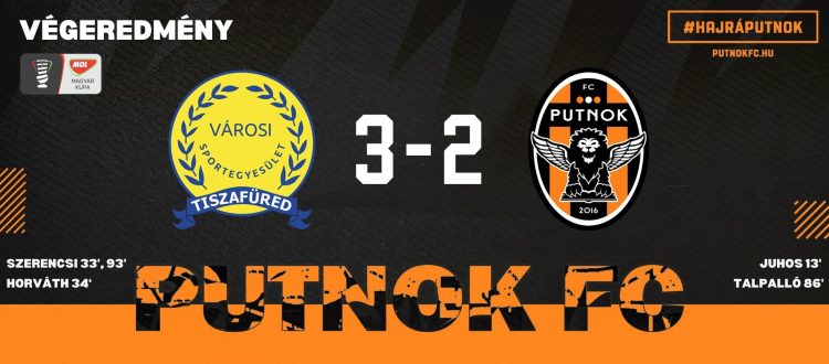Szeptember 13-án újra Tiszafüreden vizitált a Putnok FC. Szala Ákos legénysége egy héttel a bajnoki találkozó után ezúttal a MOL Magyar kupa harmadik játéknapján vendégszerepelt a Tisza parti együttes otthonában.